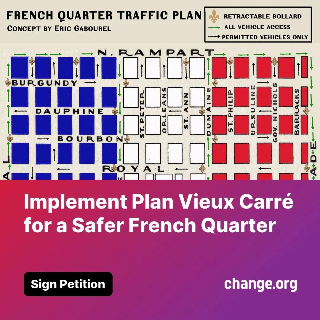 This proposal represents a conceptual framework for improving the French Quarter’s and New Orleans overall quality of life. While implementation will require significant investment, the benefits—enhanced safety, reduced congestion, and preservation of the district’s historic character—are invaluable. As a city, we must prioritize sustainable, pedestrian-focused planning to ensure the French Quarter remains a vibrant and accessible space for New Orleanians, visitors, and future generations.