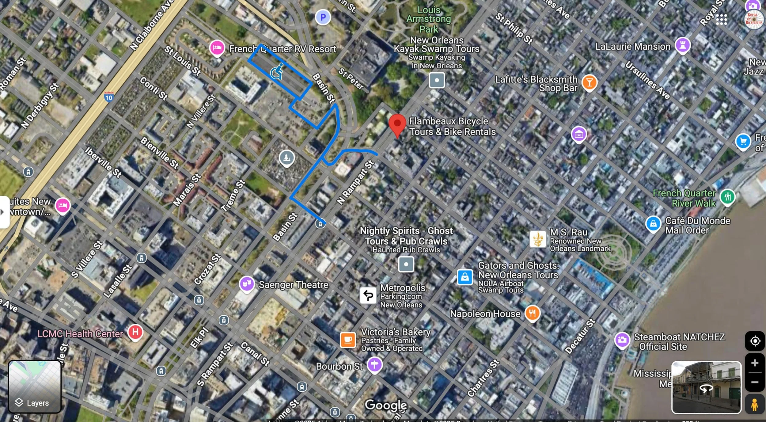 A prime opportunity exists in the city-owned, gated parking lot at the base of the Lafitte Greenway on Basin Street (see image below). Strategically located at the edge of the French Quarter with dual access points at Conti and Toulouse Streets, this lot could be reimagined as a dedicated accessible parking facility. From there, a City-operated shuttle—fully ADA-compliant and equipped for wheelchair access—could offer point-to-point service to destinations throughout the Quarter.