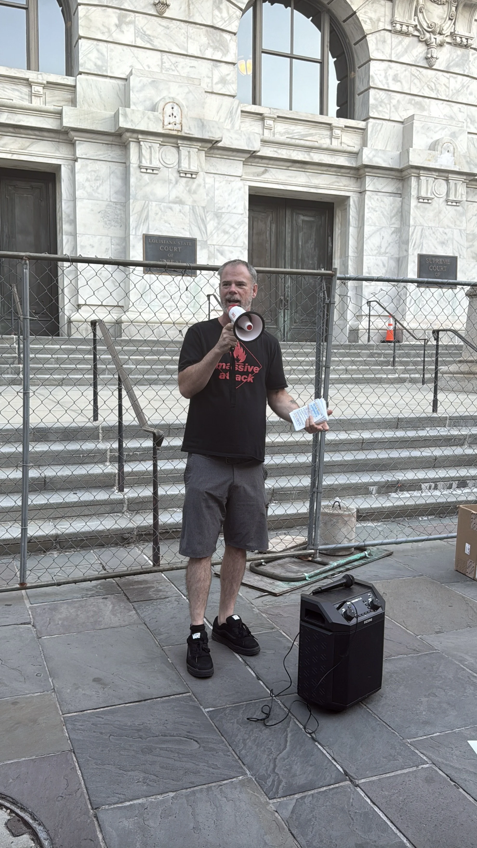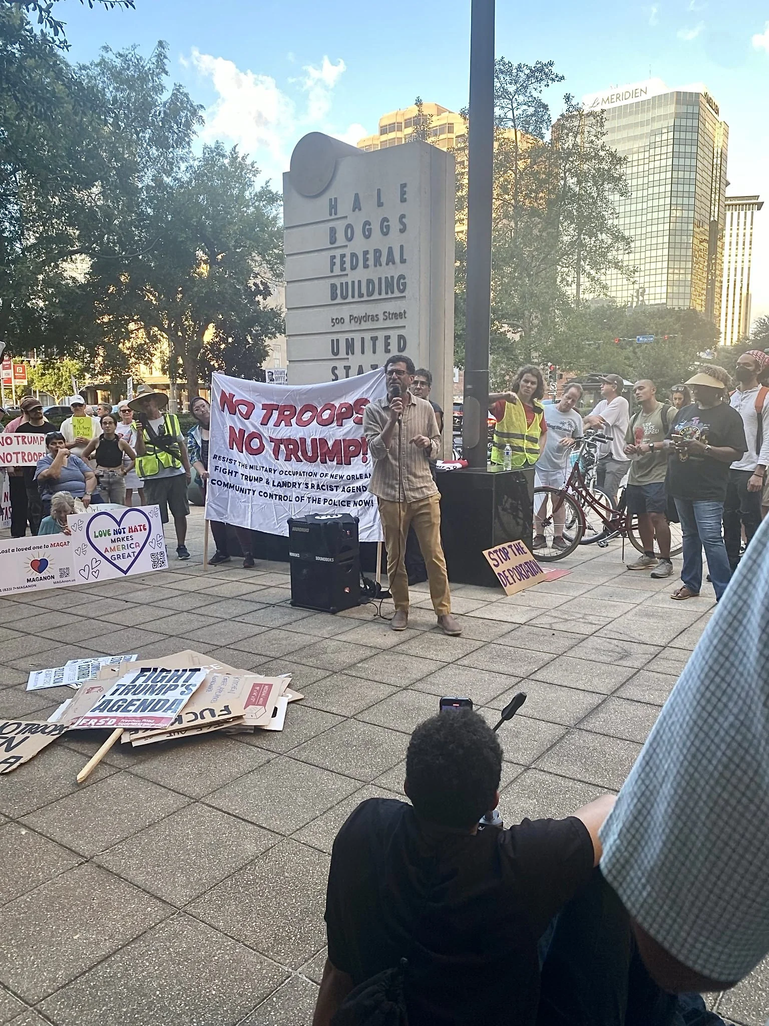 Critical Mass Nola Co-Organizer Eric Gabourel speaking at the No National Guard Rally at the Hall Boggs Federal Building on Tuesday, September 9th, 2025