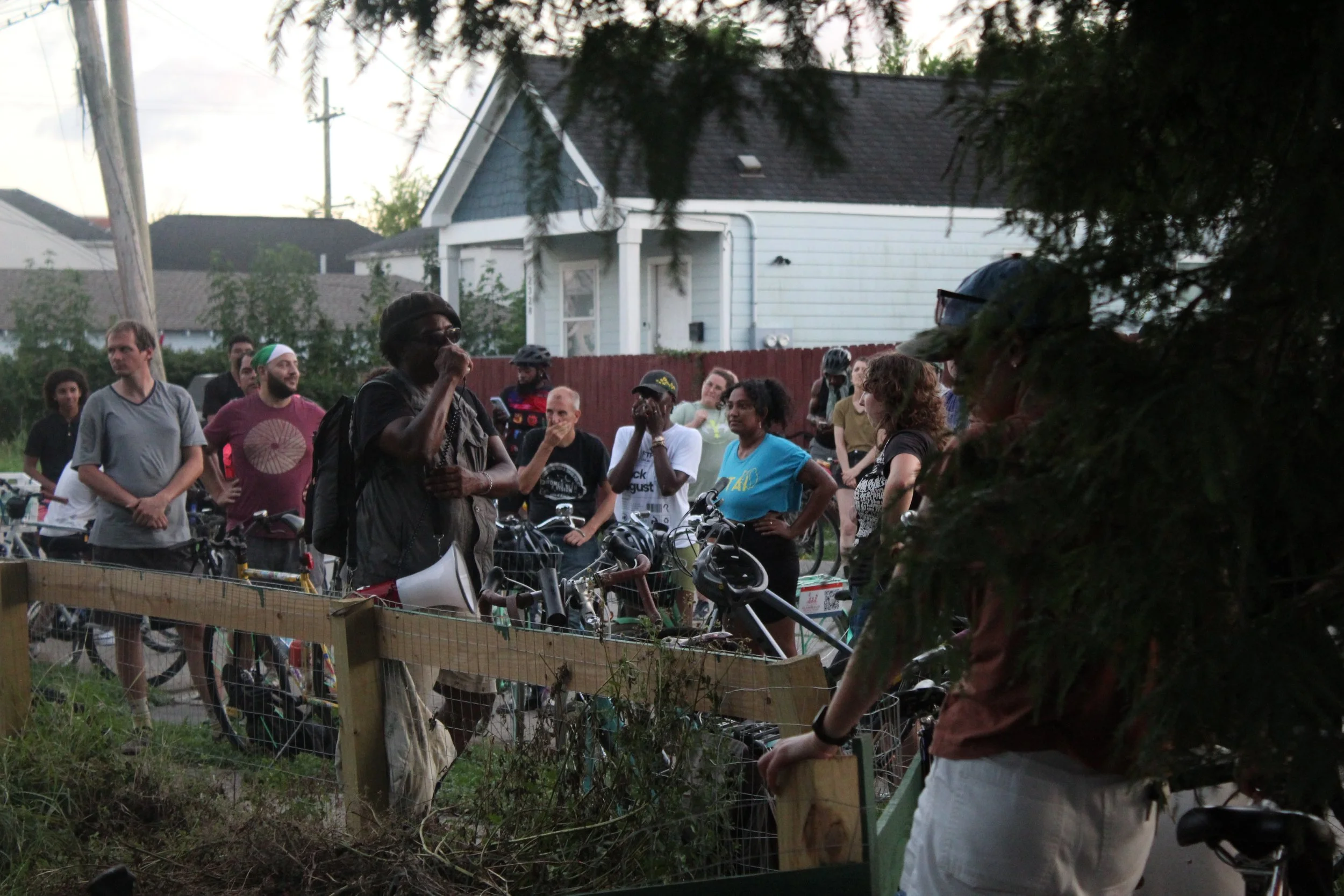 During our ride, we visited three community gardens in New Orleans that are helping to build a solidarity economy. We learned what is possible, how we can support them, and how we can grow our own network. With a citywide web of urban gardens, we can reclaim food sovereignty and break free from the food deserts imposed on our communities. One garden even had a chicken coop to produce its own eggs. If such models became widespread, and we had collective stores, imagine our ability to respond to price hikes and shortages.