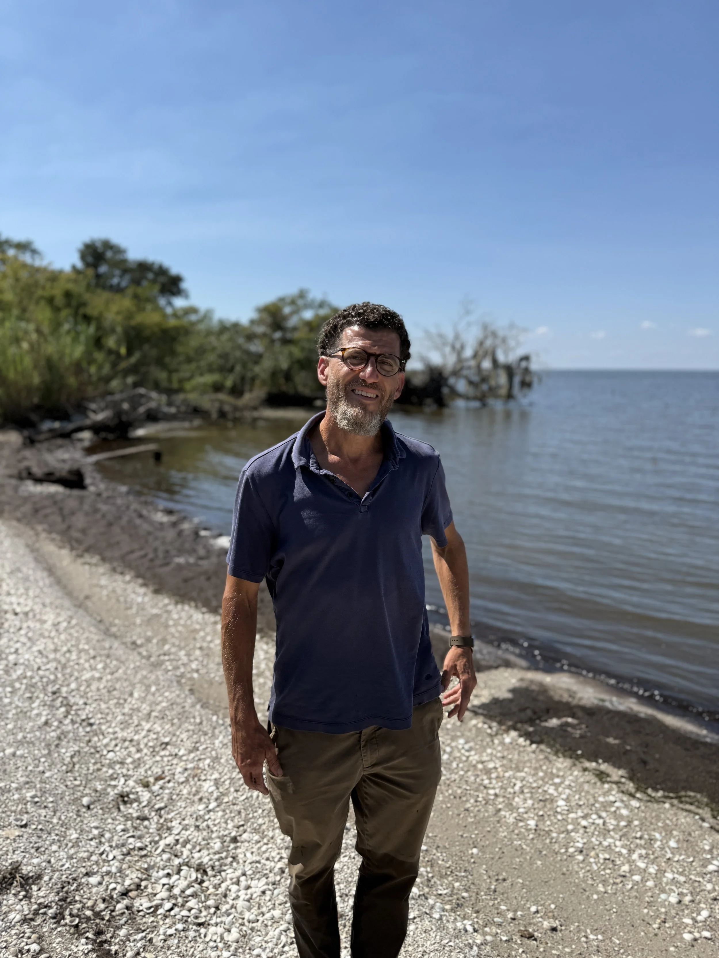 Upon our arrival, one of our carpool mates, Daniele Simpson, offered a reflection in Louisiana Kreyol and poured libations to honor the maroons of Terre Gaillard and their pursuit of liberation. Toni and I decided to wade through the waters and step onto the shore of San Malo. Walking upon the shell-formed beach felt like treading on hallowed ground. I had reached the shores of my muse. Together, the pilgrims reflected on the plight of the maroons and the promise of maroonage. Among us was New Orleans born MIT professor Jean-Luc Pietre of the Tunica-Biloxi people, whose presence gave the pilgrimage profound significance.